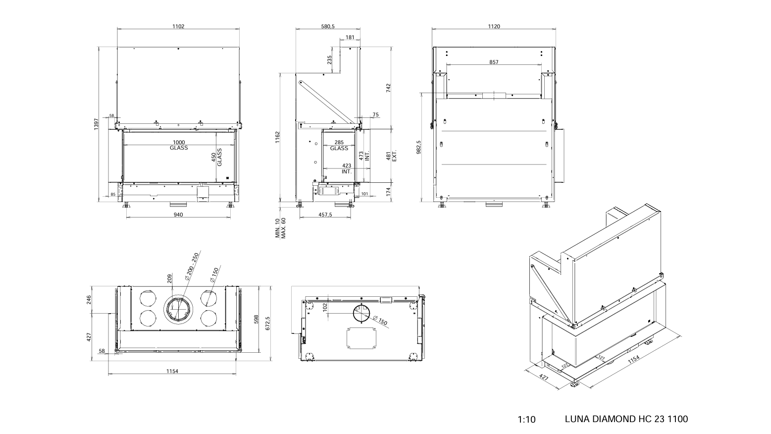 Инновационная дровяная каминная топка Луна 1100 CR/CL Даймонд / Luna 1100 CR/CL Diamond с автоматически работающими дефлекторами и шиберами, Бельгия. Уникальное цельное двухстороннее стекло! Пламя во всю ширину камина, самое чистое стекло, стильный дизайн без рамок и ручек!