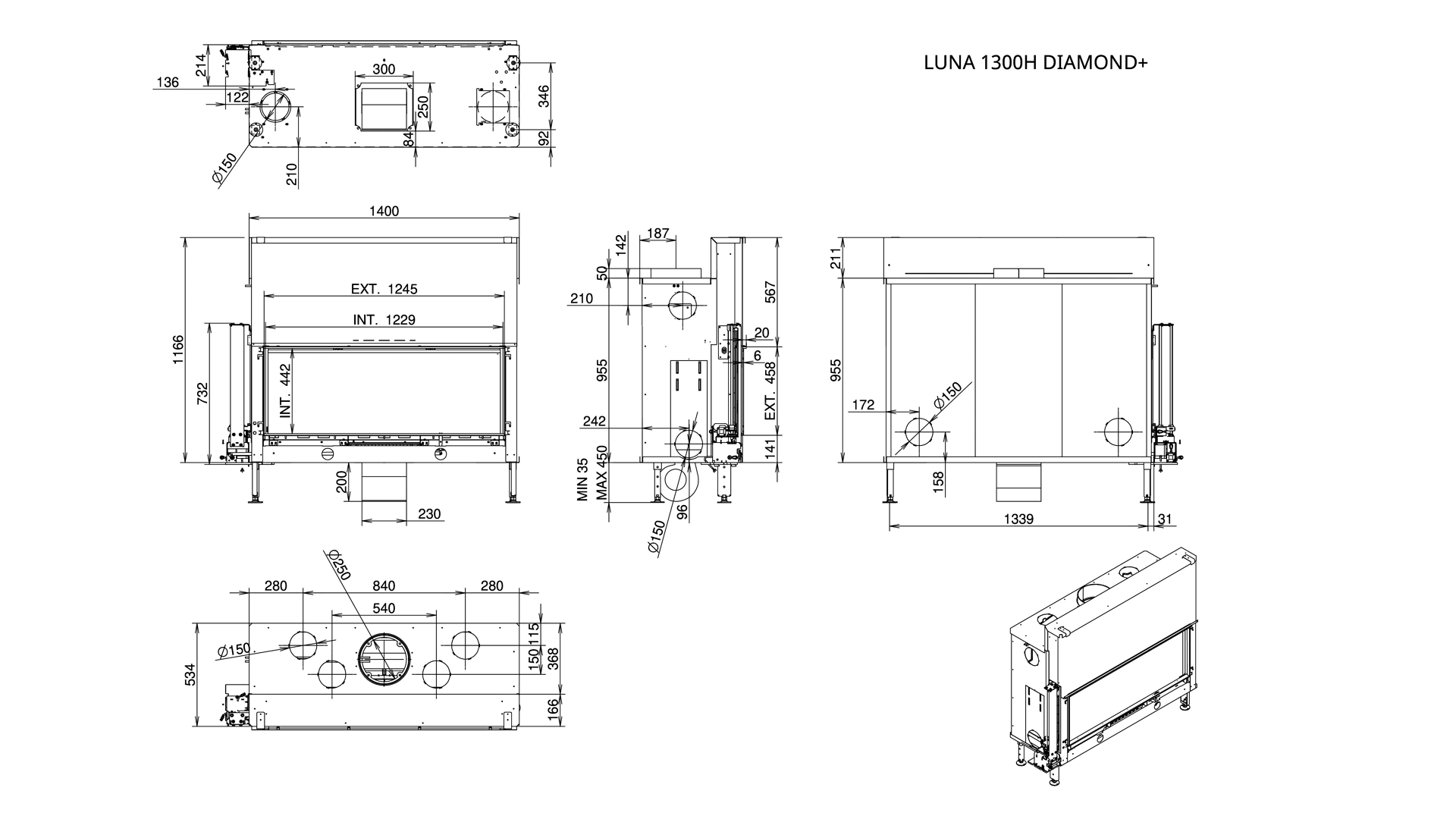 Инновационная дровяная каминная топка Луна 1300 H Даймонд / Luna 1300 H Diamond с автоматически работающими дефлекторами и шиберами, Бельгия. Пламя во всю ширину камина, самое чистое стекло, стильный дизайн без рамок и ручек! Дополнительно к стеклу - поднимающийся металлический сетчатый экран.