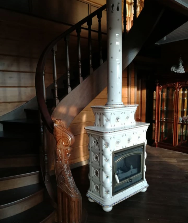 Для декорирования металлической трубы, соединяющей печь с дымовым каналом, можно использовать фаянсовые трубы, которые являются дополнительным и очень эффектным украшением печи.